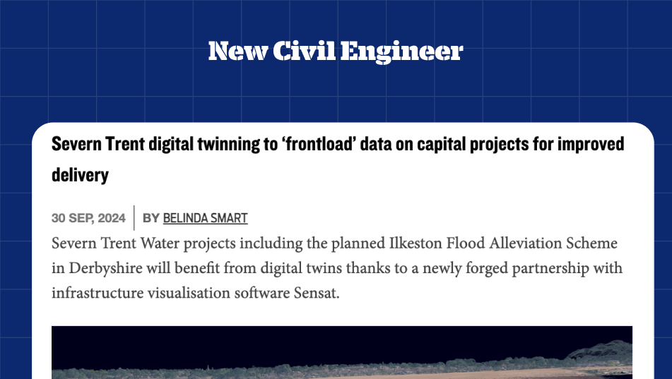 New Civil Engineer covered Sensat’s work with Severn Trent to apply digital twin technology to front-load project data, supporting improved delivery of capital infrastructure projects.